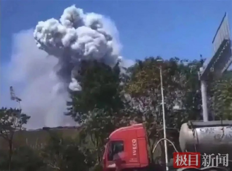 極目新聞?dòng)浾邚墨@取的多段視頻顯示,爆炸之時(shí),天空中騰起蘑菇云。隨著爆炸的巨大沖擊力,工廠的構(gòu)件也被彈飛升空,有大段鋼結(jié)構(gòu)部件被沖擊至近百米外的公路上。