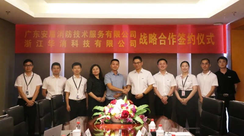 8月5日,浙江華消科技有限公司與廣東安盾消防技術(shù)服務有限公司正式簽署戰(zhàn)略合作協(xié)議,廣東安盾消防技術(shù)服務有限公司總裁唐立建、技術(shù)總監(jiān)蘇瑞浩及大華消防總裁王鋒、副總裁吳天桂等出席本次簽約儀式。
