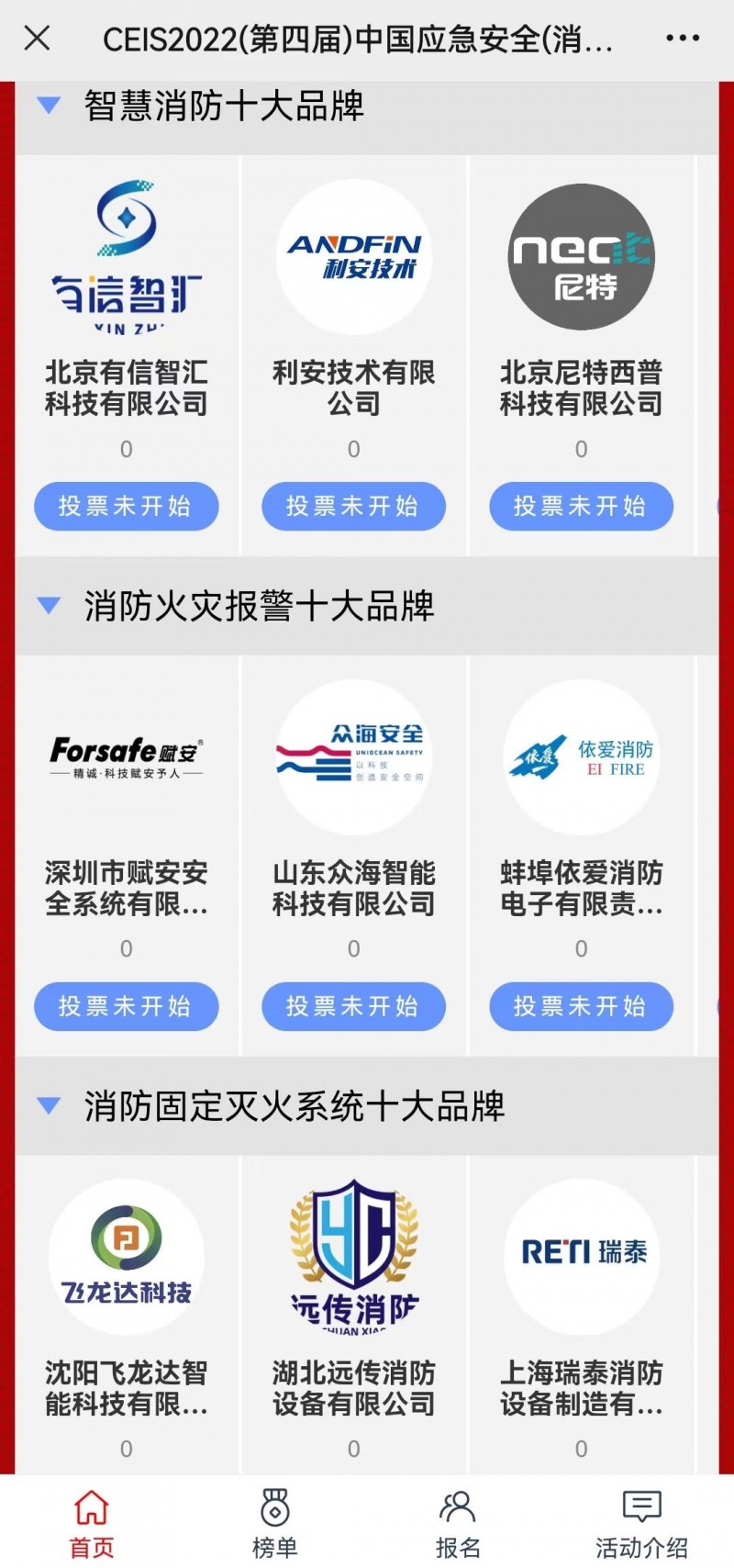 2022中國消防行業(yè)十大品牌評選自7月30日啟動報名,各大消防企業(yè)報名熱情高漲,截至目前,報名企業(yè)近千家,線上訪問量突破80000+人次!