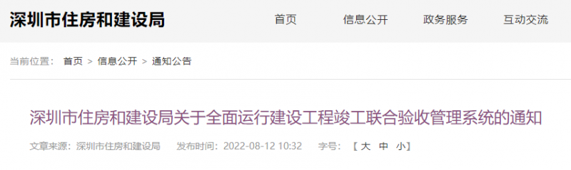 近日,深圳市住建局發(fā)布《關(guān)于全面運行建設(shè)工程竣工聯(lián)合驗收管理系統(tǒng)的通知》。2022年8月20日起全面運行,新增與規(guī)劃驗收、竣工驗收備案系統(tǒng)強制關(guān)聯(lián)以及竣工報告提前錄入等功能。