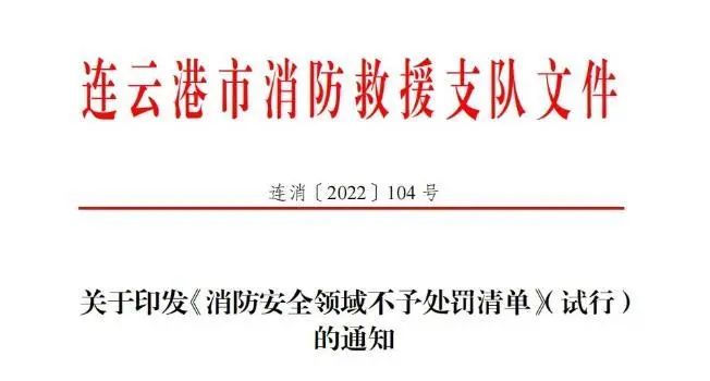 近日,江蘇省連云港市消防救援支隊出臺印發(fā)了《消防安全領(lǐng)域不予處罰清單》(以下簡稱《清單》),明確自9月1日起,對擅自挪用消防設(shè)施器材,占用堵塞疏散通道,埋壓、圈占、遮擋消火栓等10類消防領(lǐng)域輕微違法行為,推行不予處罰的包容審慎監(jiān)管機制,讓市場主體真正感受到“有溫度的執(zhí)法”。