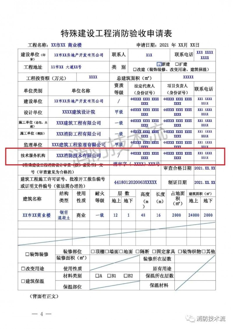 建設(shè)工程消防驗(yàn)收申請表中的“技術(shù)服務(wù)機(jī)構(gòu)”是指什么單位?