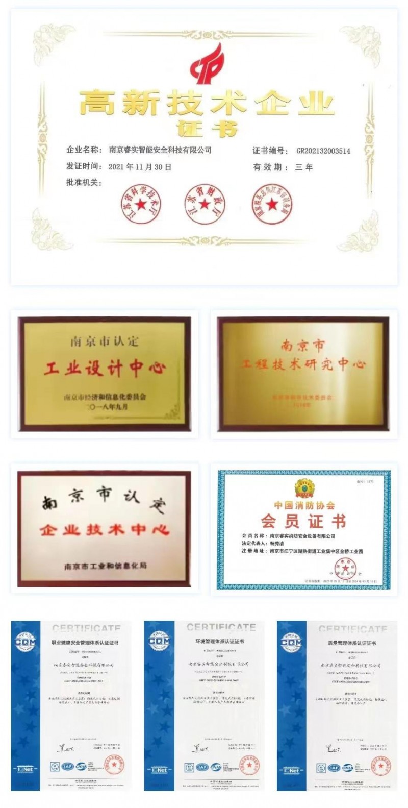 公司自成立以來一直專注消防報警與智能滅火系統(tǒng)及配套產(chǎn)品的研發(fā),擁有強大的研發(fā)和創(chuàng)新實力,組建了一支由電子、機械、PLC、軟件等不同專業(yè)領域專家組成的研發(fā)團隊,配備了專業(yè)的檢測與試驗設備,具備獨立的新品設計開發(fā)能力,新獨立開發(fā)產(chǎn)品100多個類型,全部獲得國家消防產(chǎn)品認證,擁有“睿實”自主品牌,各類專利近50項,2016年入選國家高新技術企業(yè),榮獲南京市政府“電子信息化制造示范企業(yè)”、江蘇優(yōu)質(zhì)誠信消防安全設備服務示范單位、中國消防協(xié)會單位會員、阿里巴巴電子信息化重點示范企業(yè)、江蘇省民營科技企業(yè)、南京市名牌產(chǎn)品等榮譽稱號。