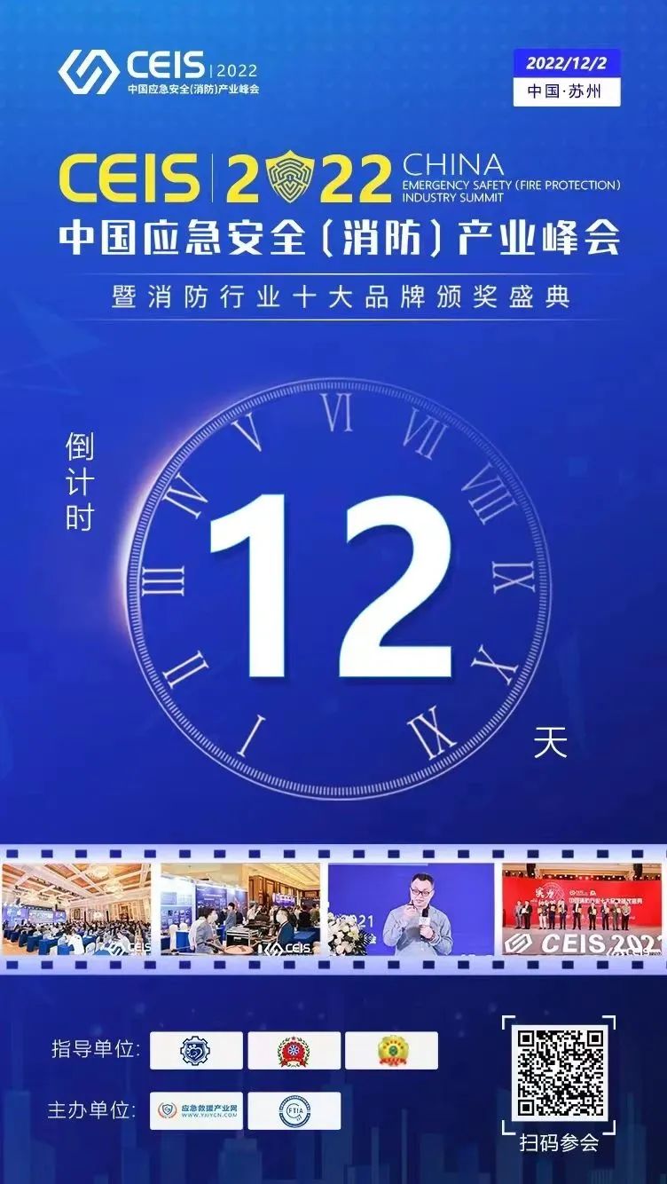 距離CEIS2022中國應(yīng)急安全(消防)產(chǎn)業(yè)峰會暨消防行業(yè)十大品牌頒獎盛典倒計時12天!誠邀您共赴盛會。探討產(chǎn)業(yè)發(fā)展趨勢,共同為應(yīng)急安全事業(yè)賦能!