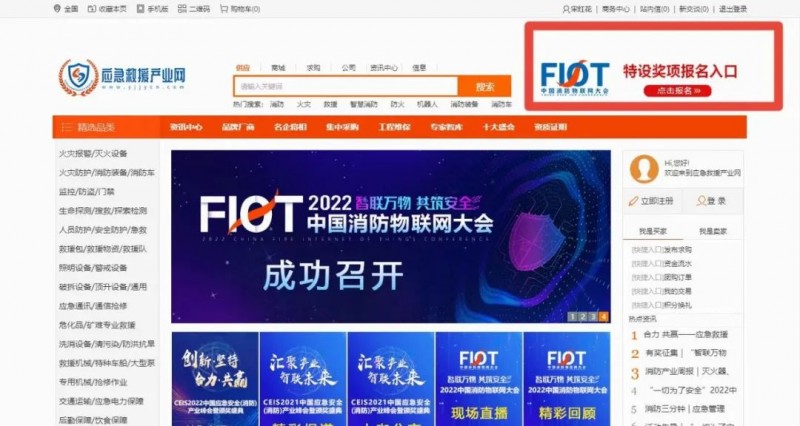 ①第一步:進(jìn)入“應(yīng)急救援產(chǎn)業(yè)網(wǎng)”官網(wǎng),點(diǎn)擊FIOT圖標(biāo),進(jìn)入特設(shè)獎(jiǎng)項(xiàng)評(píng)選界面。