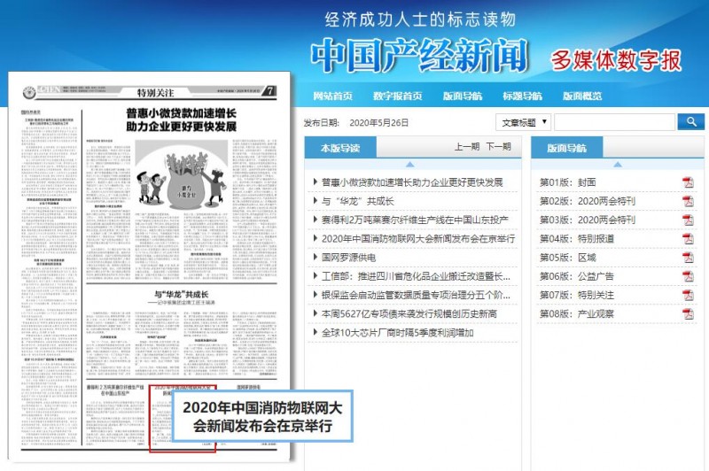 截至5月26日,包括中國產經新聞報、消費時報、中國新聞網、國際在線、搜狐網在內的300余家媒體對“構建萬物互聯(lián)的消防安全世界”2020首屆中國消防物聯(lián)網大會新聞發(fā)布會的消息進行報道。部分媒體鏈接如下: