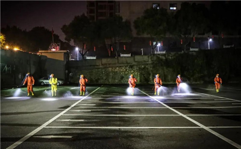 湖北省宜昌市消防救援支隊(duì)在該市一處廣場(chǎng)進(jìn)行消殺作業(yè)(2月4日攝)新華社