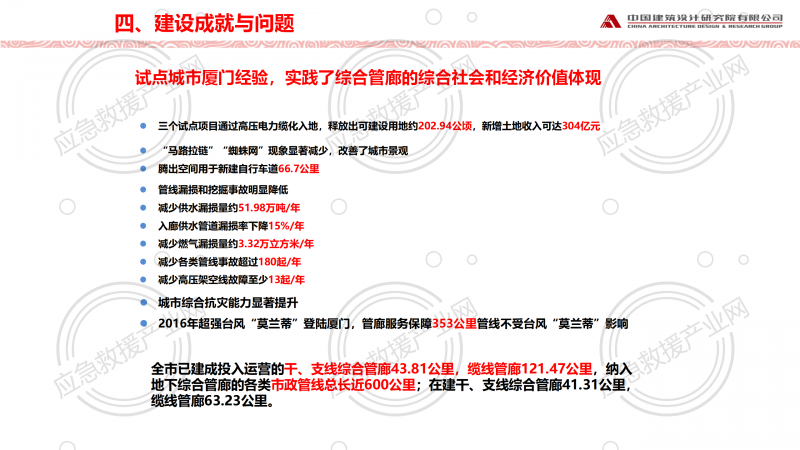 城市試點(diǎn),提供先進(jìn)經(jīng)驗(yàn)。他指出以廈門(mén)為首的優(yōu)秀試點(diǎn)城市經(jīng)驗(yàn),實(shí)現(xiàn)了管廊建設(shè)的社會(huì)和經(jīng)濟(jì)價(jià)值,高壓電纜入地化節(jié)省了可建設(shè)用地、減少了運(yùn)輸耗損、提高了城市抗震減災(zāi)能力。