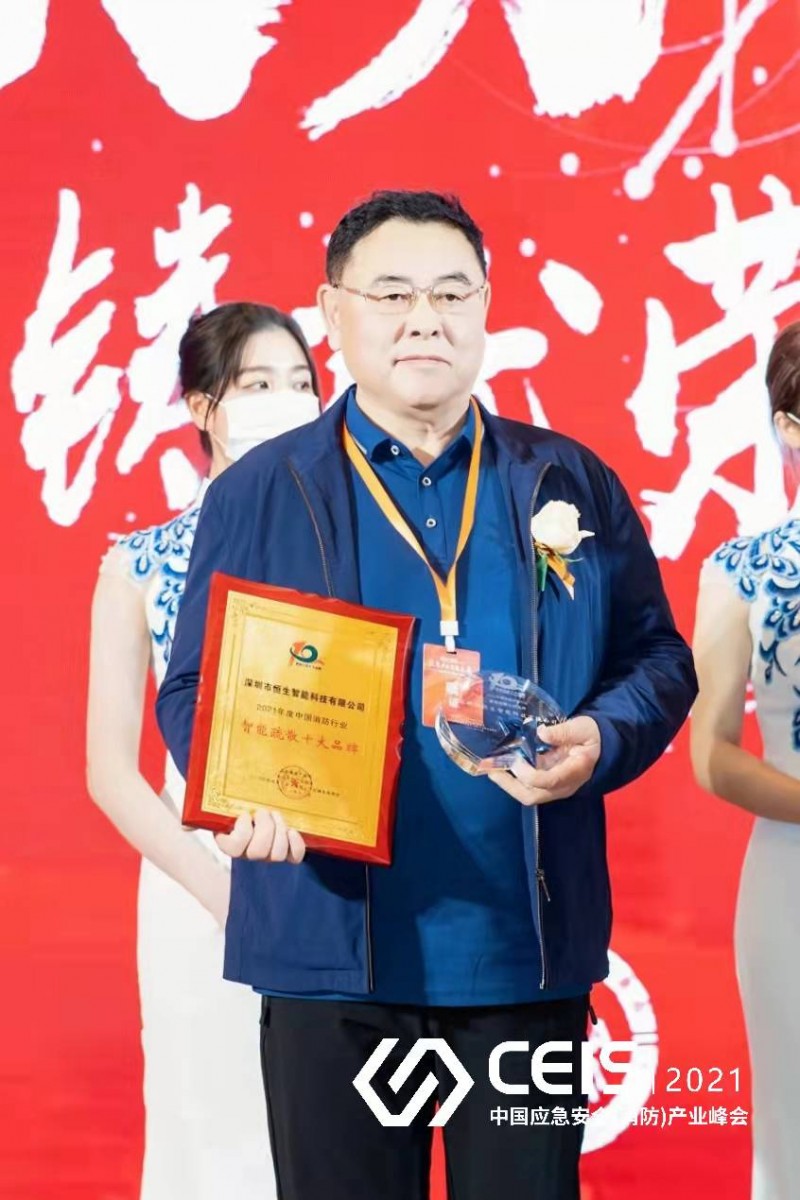▲深圳恒生榮獲“智能疏散十大品牌”獎項(左二)